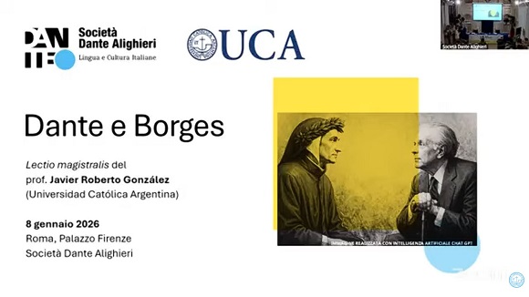 ANSA Latina — La comparación de la poesía de Dante y la de Jorge Luis Borges fue el tema del primer encuentro organizado en 2026 por la Sociedad Dante Alighieri de Roma (Italia).