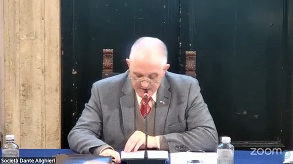 El jueves 8 de enero, en la Sala Luca Serianni del Palazzo Firenze (Piazza di Firenze 27), el profesor Javier Roberto González [académico de número de la AAL], decano de la Facultad de Filosofía y Letras de la Universidad Católica Argentina e investigador del CONICET, Argentina, impartió una conferencia sobre el Canto V del Purgatorio de Dante y el Poema Conjetural de Borges.